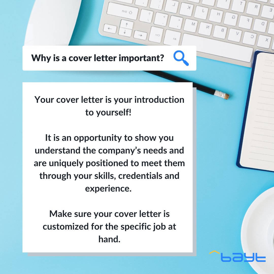 When applying for a new job, it's essential that you craft an effective cover letter and refine your resume to suit the company your applying to. A cover letter is an important way to showcase how your unique combination of skills and experience meet the key requirements of the job description. Also, one important thing to emphasize is that the cover letter can essentially carry out information that the resume cannot. Most candidates fail to recognize that their resume should be tailored to fit the position they're applying for, just like the cover letter. Jun 18, 2019 · importance of customized cover letters is perhaps the most under rated aspect in job search.